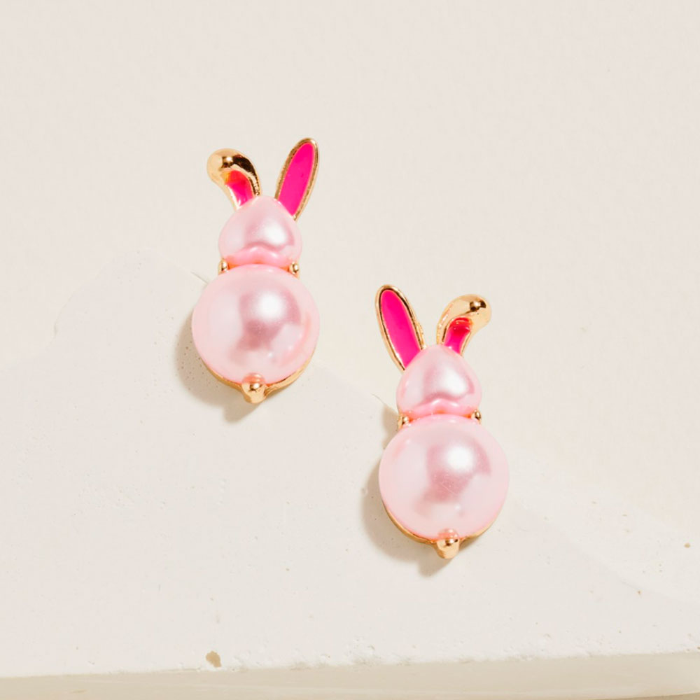 • Cute bunny stud earrings with a playful animal silhouette and smooth pearl-inspired accents. A charming choice for Easter assortments, spring collections, gift shops, and novelty jewelry displays. Lightweight and easy to style, these earrings add a fun seasonal touch to everyday outfits.