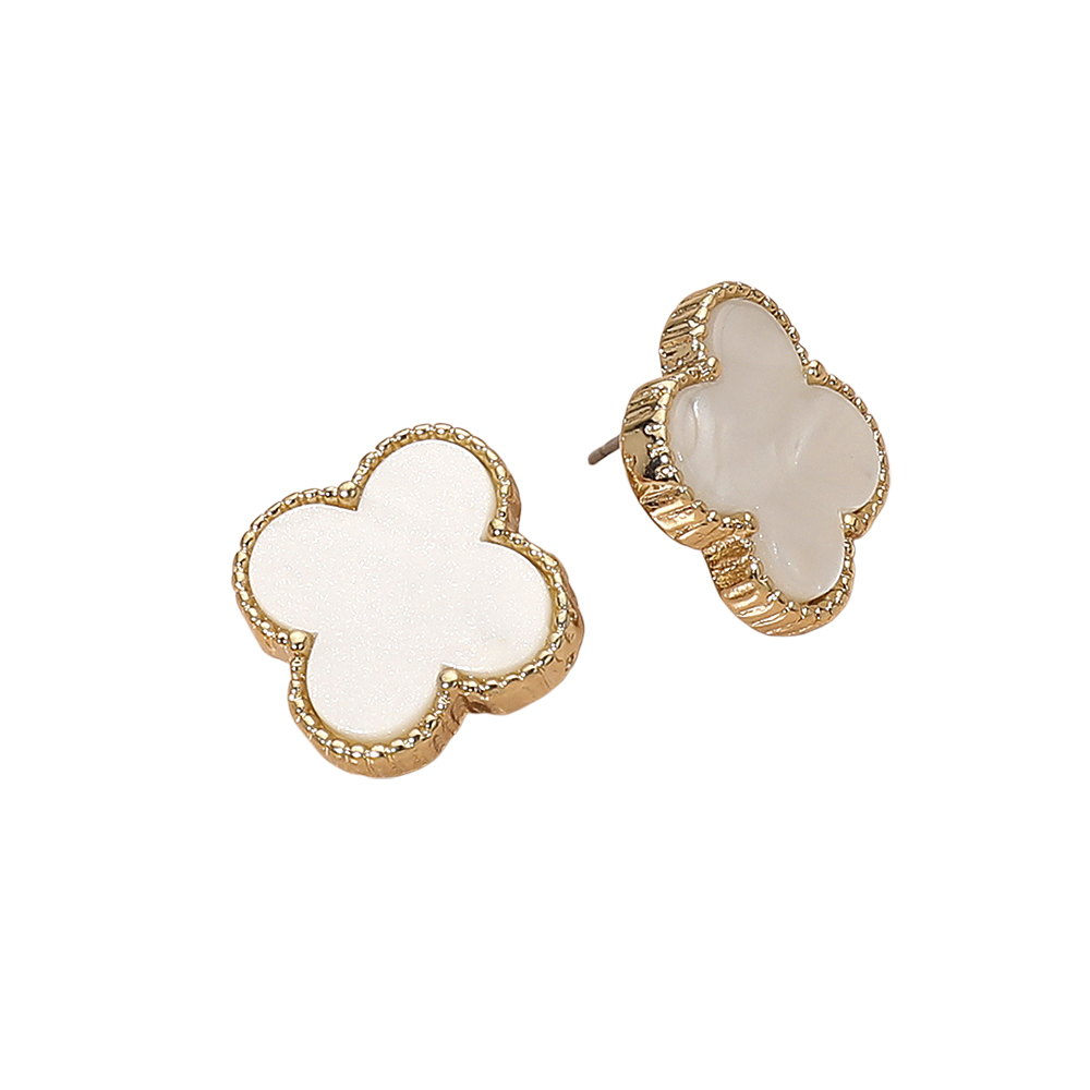 • Stylish quatrefoil stud earrings featuring a smooth, glossy center framed by a detailed beaded outline. A refined, symmetrical shape adds a touch of sophistication to everyday outfits. Lightweight, versatile, and perfect for gifting or enhancing any jewelry collection.