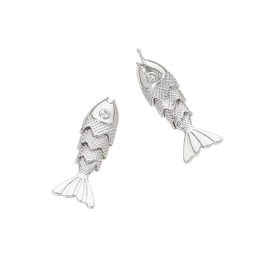 Rhinestone Accent Articulated Fish Stud Earrings Rhinestone Accent Articulated Fish Stud Earrings