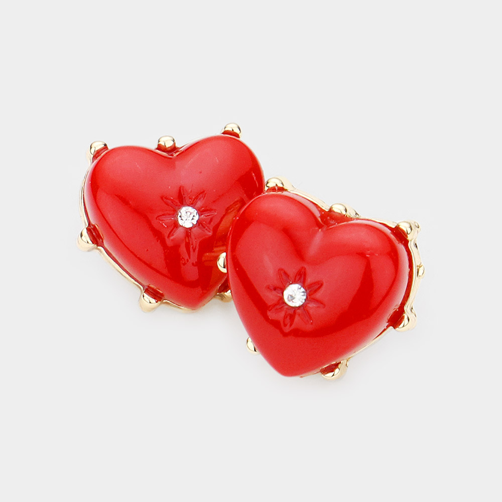 Rhinestone Centered Resin Heart Stud Earrings