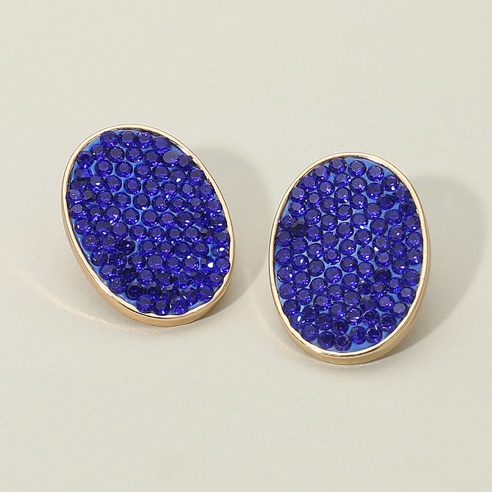 Details • Size : 0.75" X 1" • Post Back • Elegant oval stud earrings encrusted with shimmering rhinestones for a radiant finish. Lightweight and versatile, they add sparkle to casual outfits or evening attire. Perfect for everyday wear, parties, or gifting, these earrings offer timeless beauty and a touch of glamour to any jewelry collection. • Lead and Nickel Compliant
