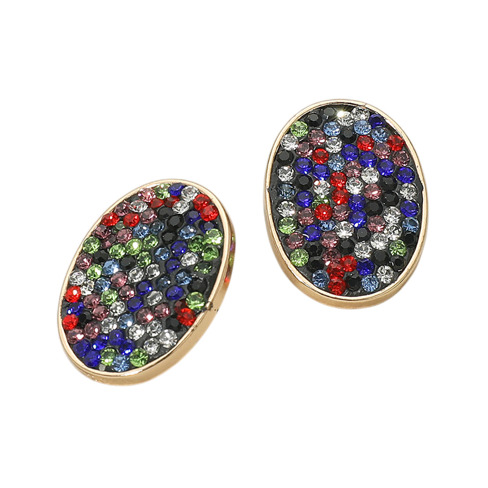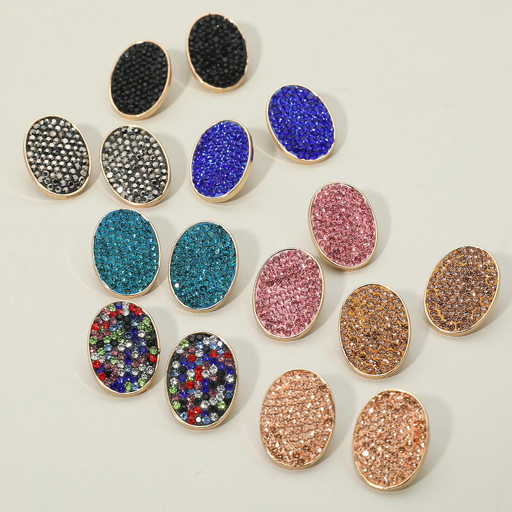 Details • Size : 0.75" X 1" • Post Back • Elegant oval stud earrings encrusted with shimmering rhinestones for a radiant finish. Lightweight and versatile, they add sparkle to casual outfits or evening attire. Perfect for everyday wear, parties, or gifting, these earrings offer timeless beauty and a touch of glamour to any jewelry collection. • Lead and Nickel Compliant