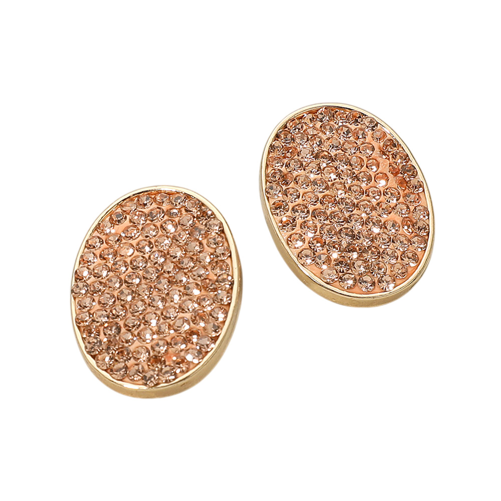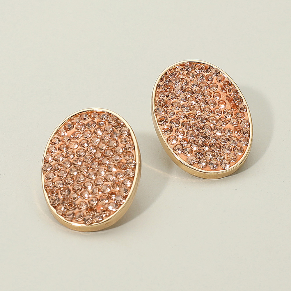 Details • Size : 0.75" X 1" • Post Back • Elegant oval stud earrings encrusted with shimmering rhinestones for a radiant finish. Lightweight and versatile, they add sparkle to casual outfits or evening attire. Perfect for everyday wear, parties, or gifting, these earrings offer timeless beauty and a touch of glamour to any jewelry collection. • Lead and Nickel Compliant