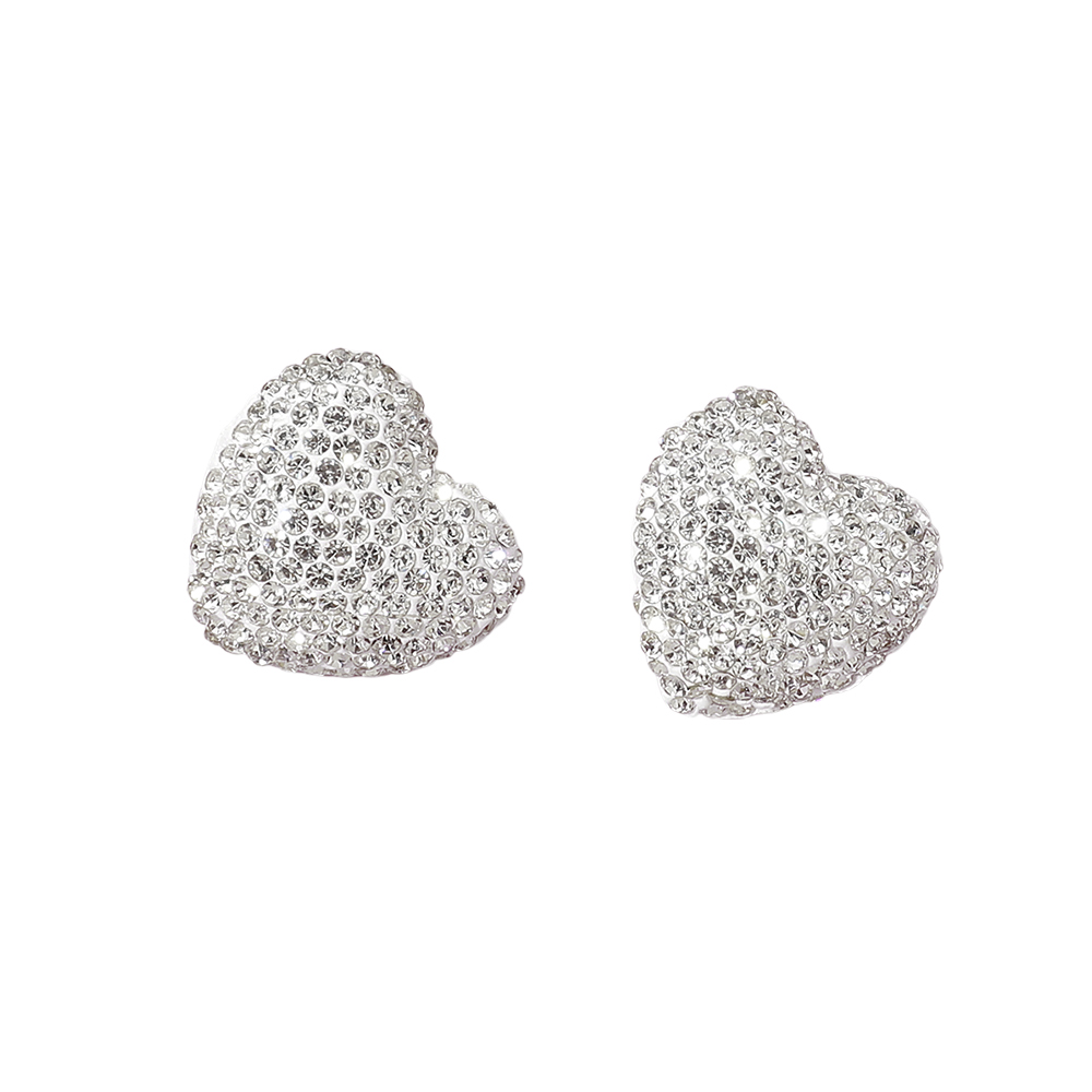 • These pavĂ© heart stud earrings feature a sculpted heart silhouette covered in tightly set stones for radiant sparkle. Designed for everyday wear or special moments, they add a romantic accent to any look. A versatile choice for gifting, boutiques, or curated jewelry collections seeking timeless charm with modern appeal.