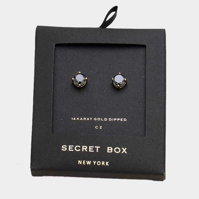 Secret Box _ 14K Gold Dipped CZ Round Stud Earrings
