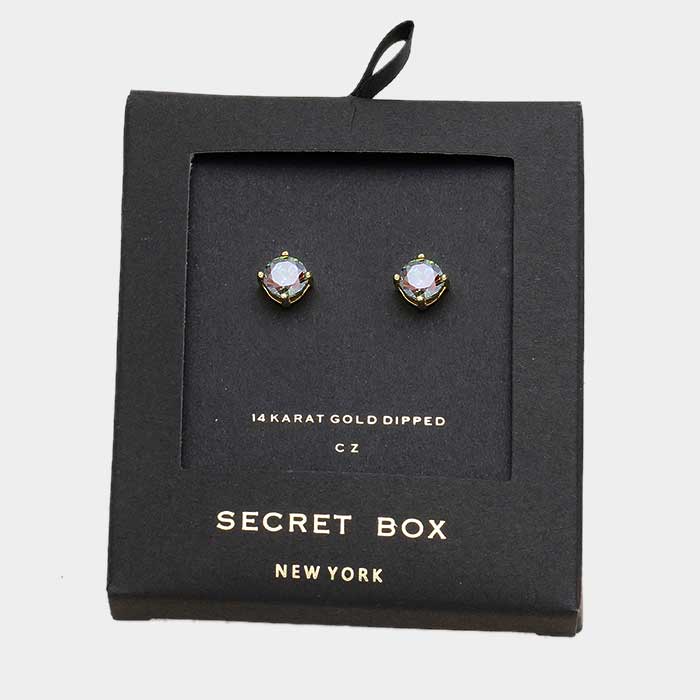 Secret Box _ 14K Gold Dipped CZ Round Stud Earrings