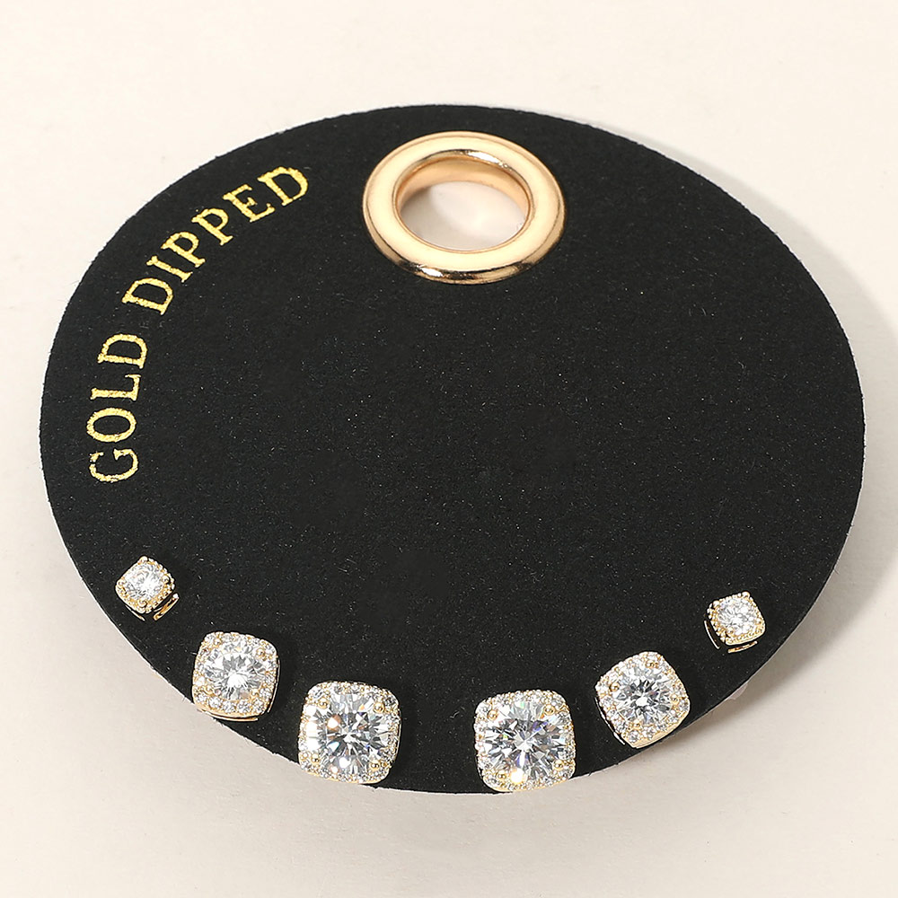 SECRET BOX_Gold Dipped 3Pairs Cushion Cut Stud Earring Set