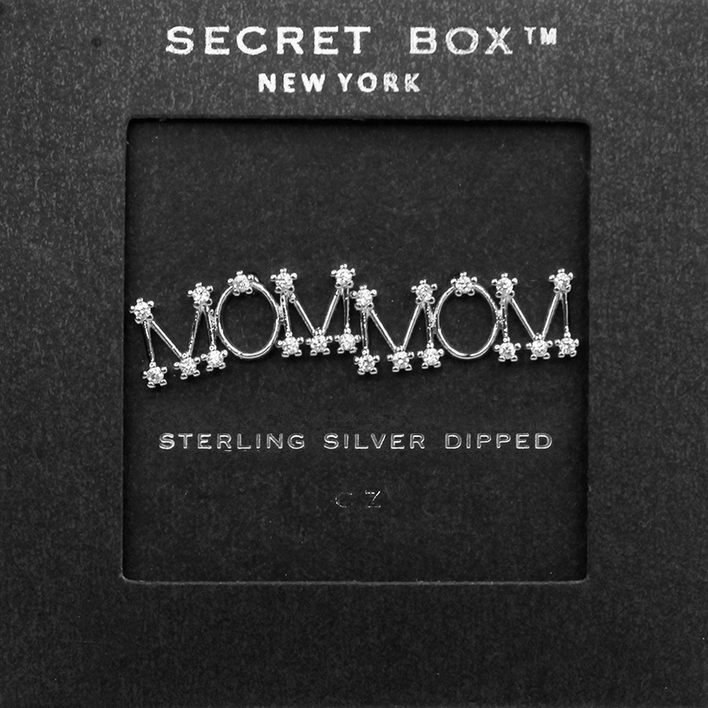 Secret Box_Sterling Silver Dipped CZ MOM Message Stud Earrings