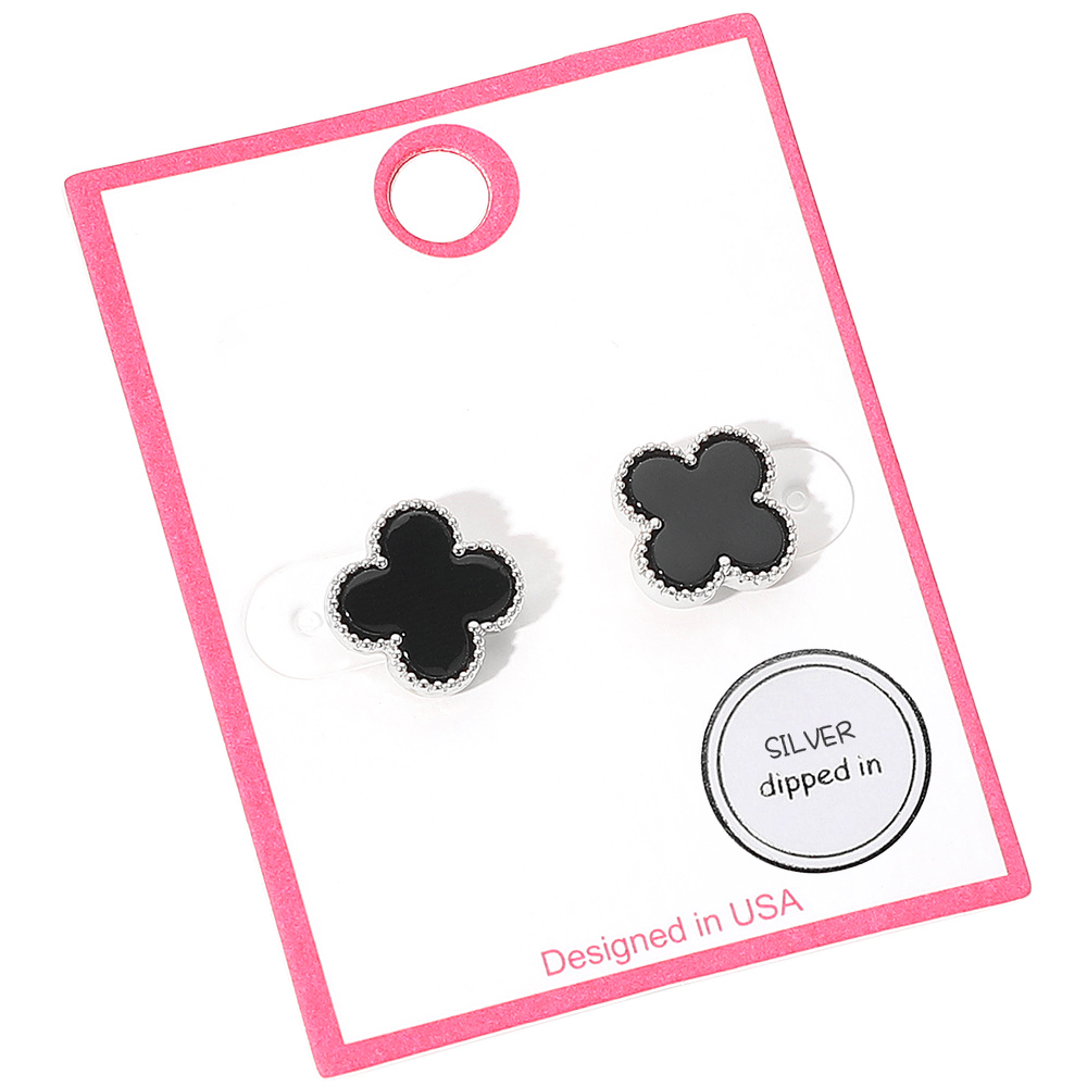Silver Dipped Quatrefoil Stud Earrings Silver Dipped Quatrefoil Stud Earrings