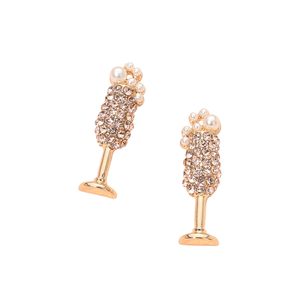• Playful champagne glass stud earrings designed with pavĂ©-style sparkle and elegant beaded accents for a fun yet polished look. Perfect for celebrations, parties, gifting moments, and statement styling, these novelty-inspired studs add charm and personality to boutique accessory collections.