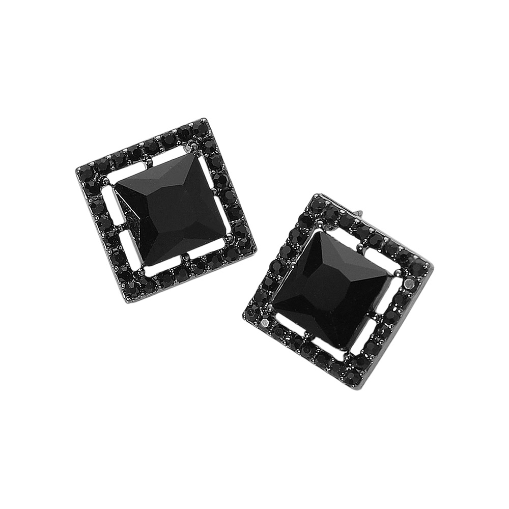 Square Cut Gemstone Framed Evening Stud Earrings Square Cut Gemstone Framed Evening Stud Earrings