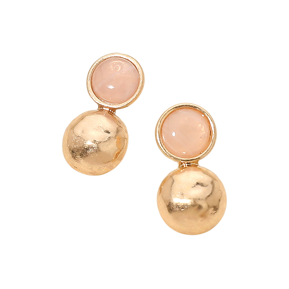 • These dual-dome stud earrings combine a smooth stone accent with a textured metallic sphere for a refined, modern look. Lightweight and versatile, they add subtle elegance to everyday outfits or dressy ensembles, making them an easy, stylish addition to any jewelry collection.