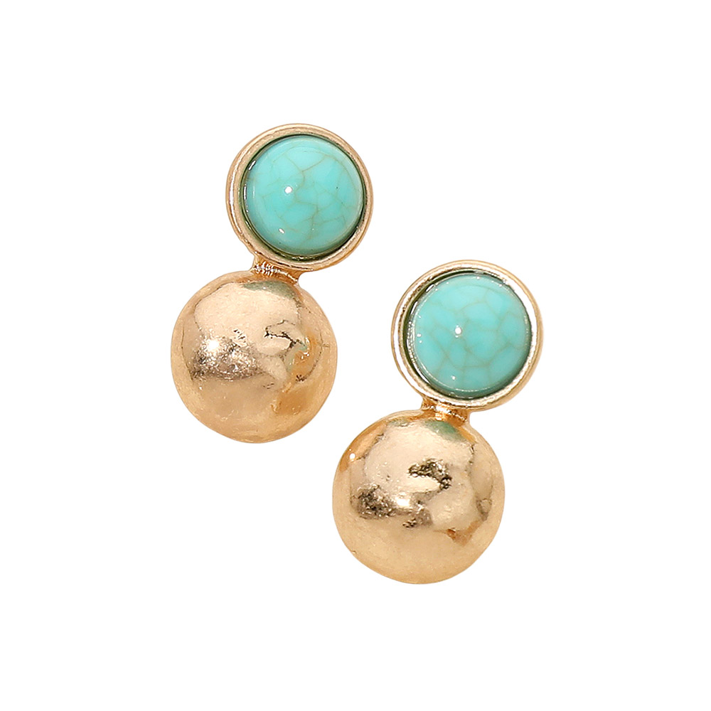 • These dual-dome stud earrings combine a smooth stone accent with a textured metallic sphere for a refined, modern look. Lightweight and versatile, they add subtle elegance to everyday outfits or dressy ensembles, making them an easy, stylish addition to any jewelry collection.