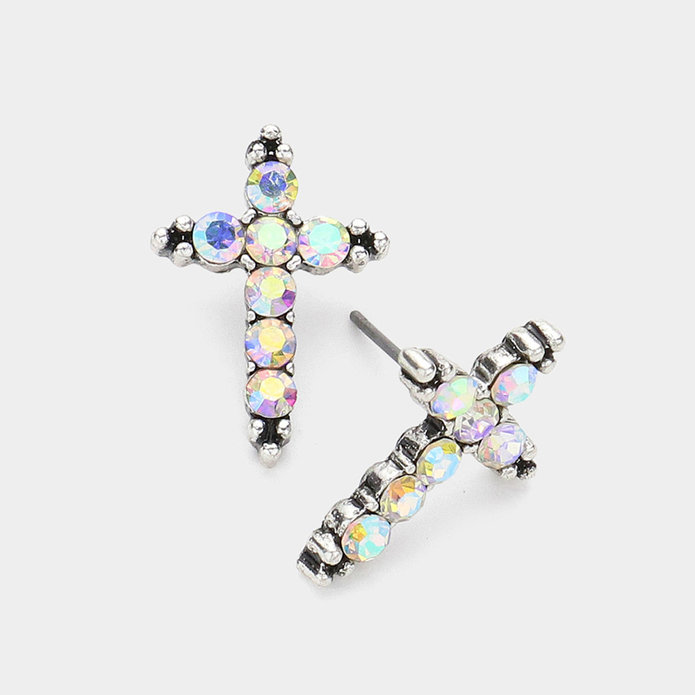 Oversized Stone Embellished Cross Pendant Accented Abstract Metal Wire Statement Necklace