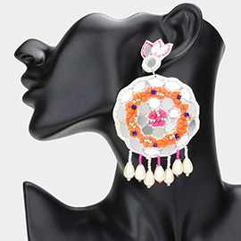 Round Centered Marquise Stone Cluster Dangle Evening Earrings
