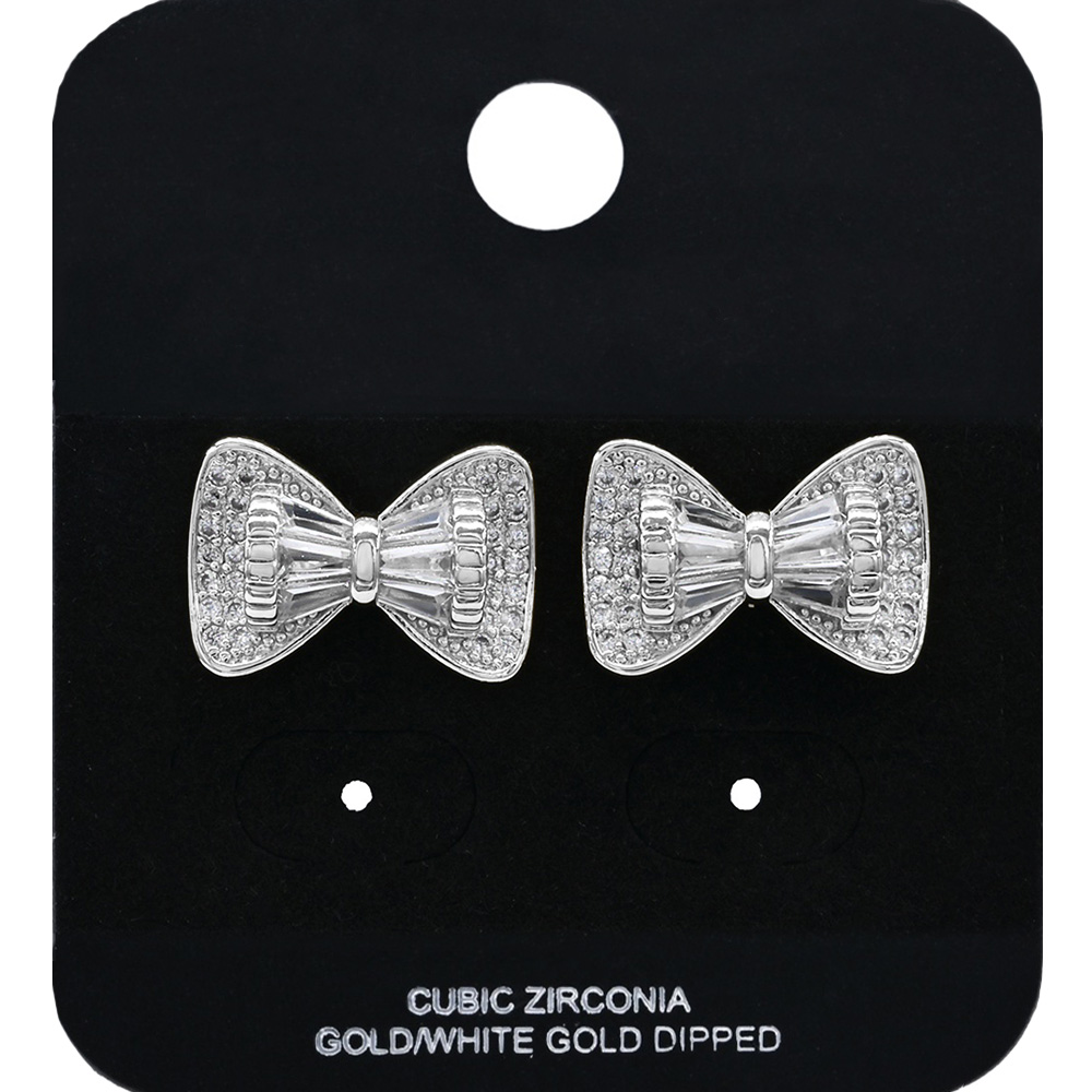 Details • Size : 0.4" X 0.7" • Post Back • Add a touch of charm with these elegant bow stud earrings, designed with a sparkling arrangement that captures light beautifully. Their refined bow silhouette makes them perfect for both everyday wear and special occasions, offering a timeless style that complements any jewelry collection. • CZ Cubic Zirconia • Gold Dipped • Lead and Nickel Compliant