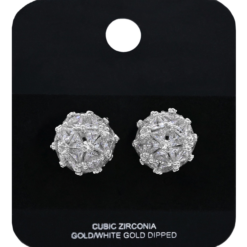 White Gold Dipped CZ Stone Cluster Stud Earrings