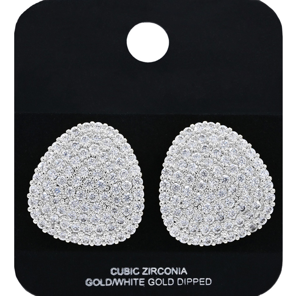 Gold Dipped CZ Stone Paved Round Triangle Stud Earrings