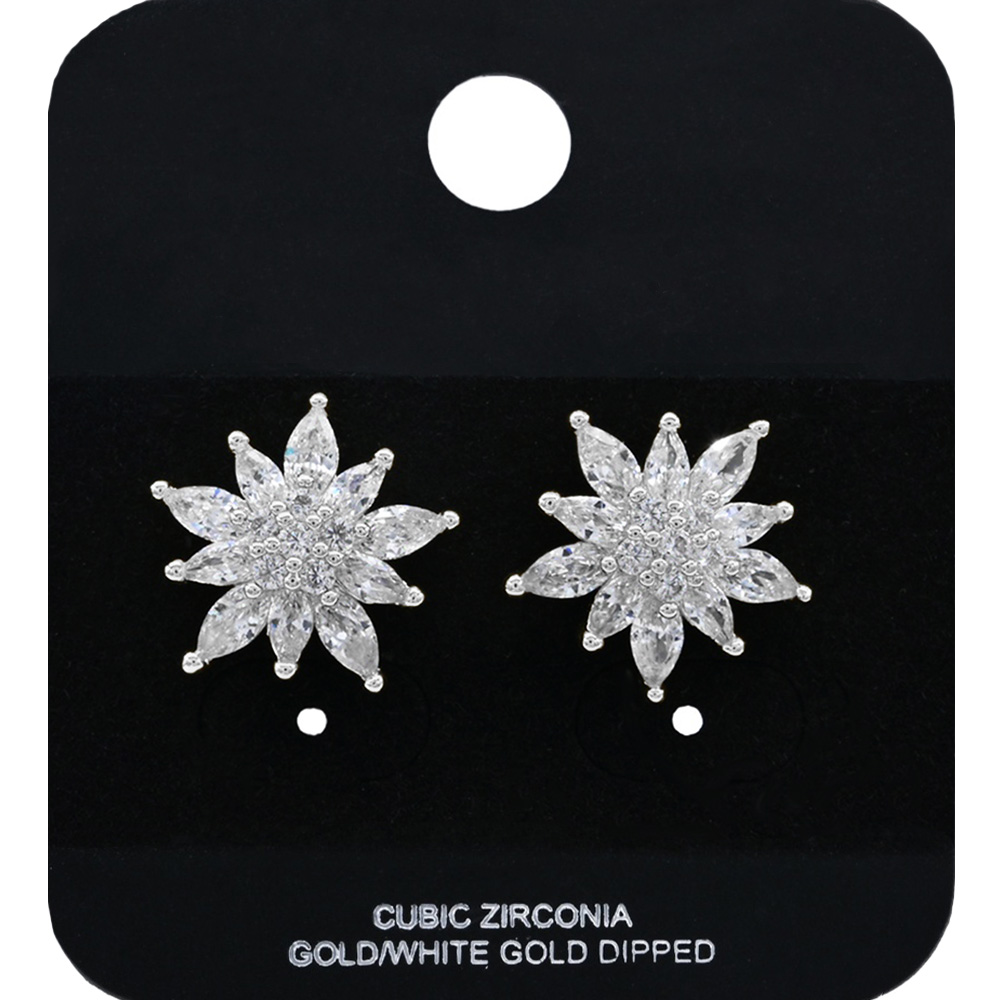 White Gold Dipped Floral CZ Stone Stud Earrings