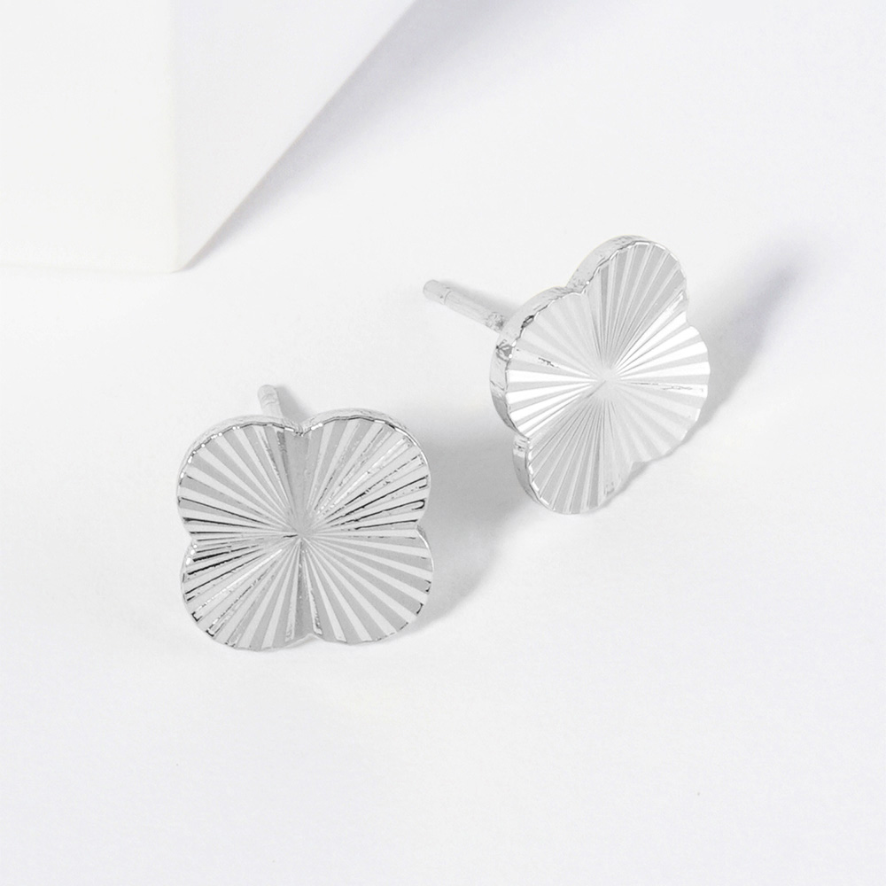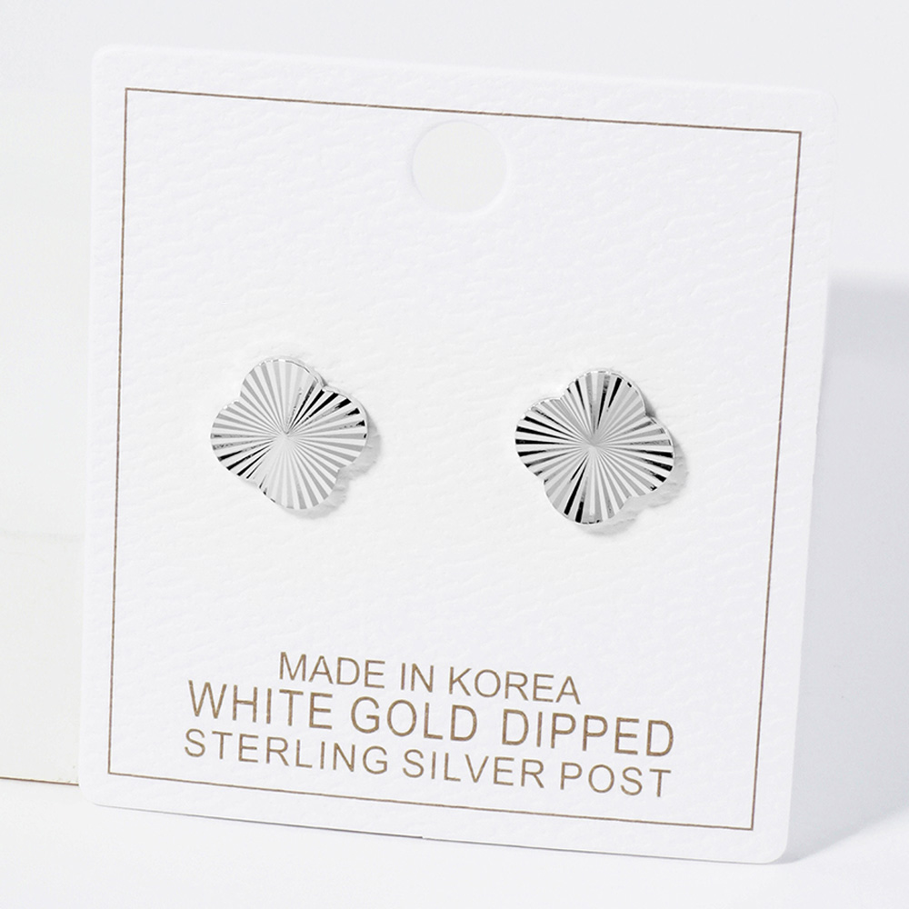 White Gold Dipped Textured Metal Quatrefoil Stud Earrings