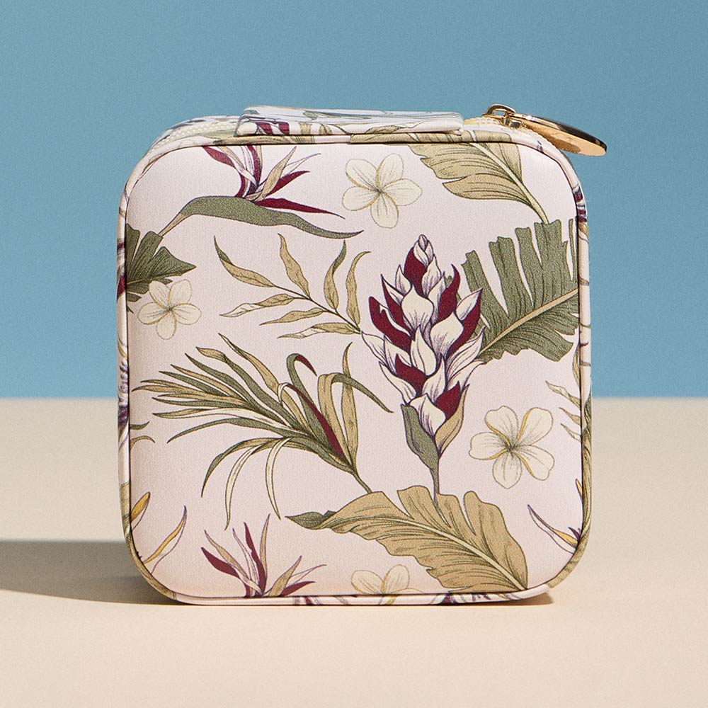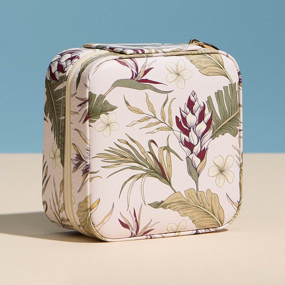 Details • Size : 3.5" X 3.5" X 2" • Zipper Closure • Elegant mini zip pouch featuring a detailed botanical floral print, designed to keep small essentials neatly stored. Ideal for travel, handbags, or daily organization, this compact pouch is perfect for jewelry, coins, earbuds, or accessories while adding a refined, nature-inspired touch.