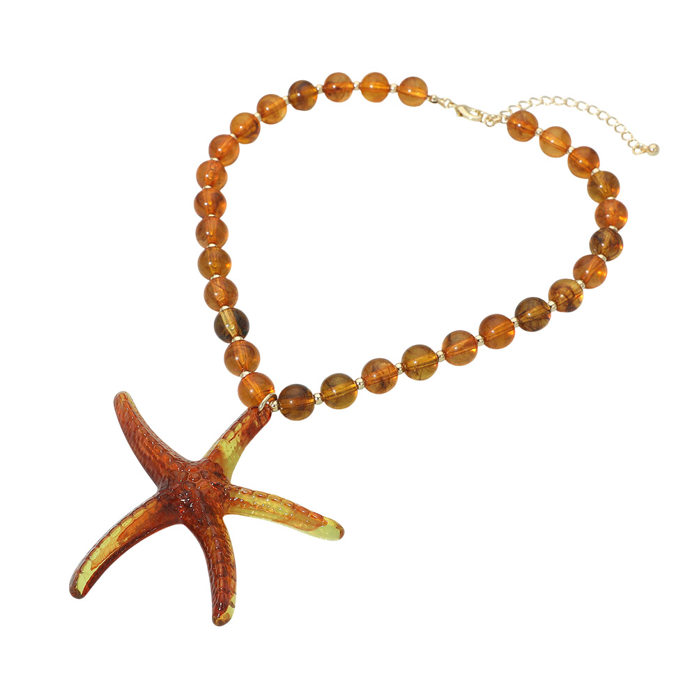 Details • Necklace Size : 17.5" + 3" L • Pendant Size : 3.5" X 3.5" • Eye-catching statement necklace featuring a bold starfish pendant paired with smooth beaded detailing and an adjustable chain for versatile styling. A standout accessory for beach-inspired looks, resort wear, summer outfits, and casual fashion, perfect for adding playful charm and a coastal-inspired accent. • Lead and Nickel Compliant