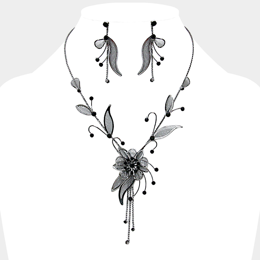 Flower Teardrop Stone Embellished Chandelier Dangle Earrings