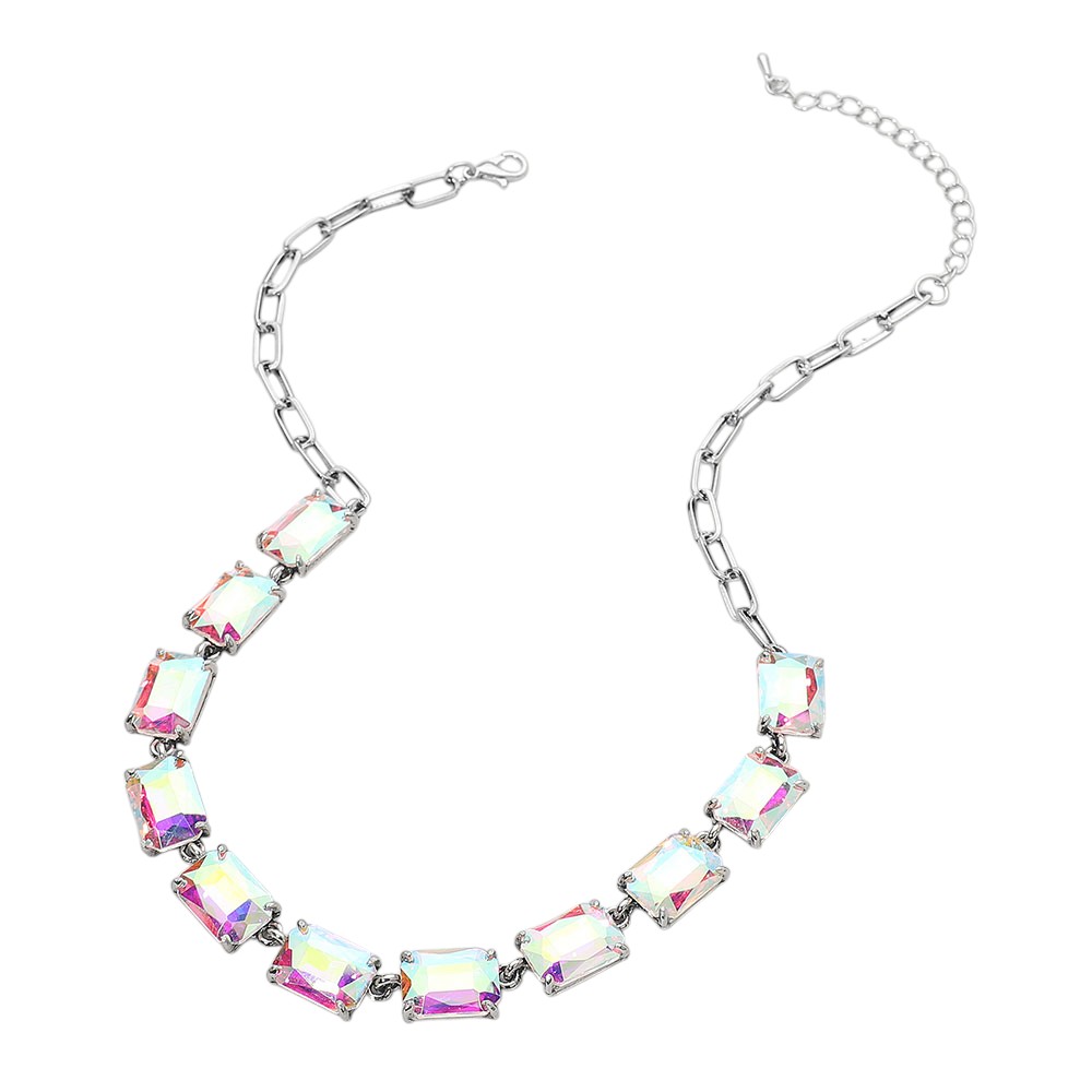 Cushion Rectangular Stone Cluster Link Evening Necklace
