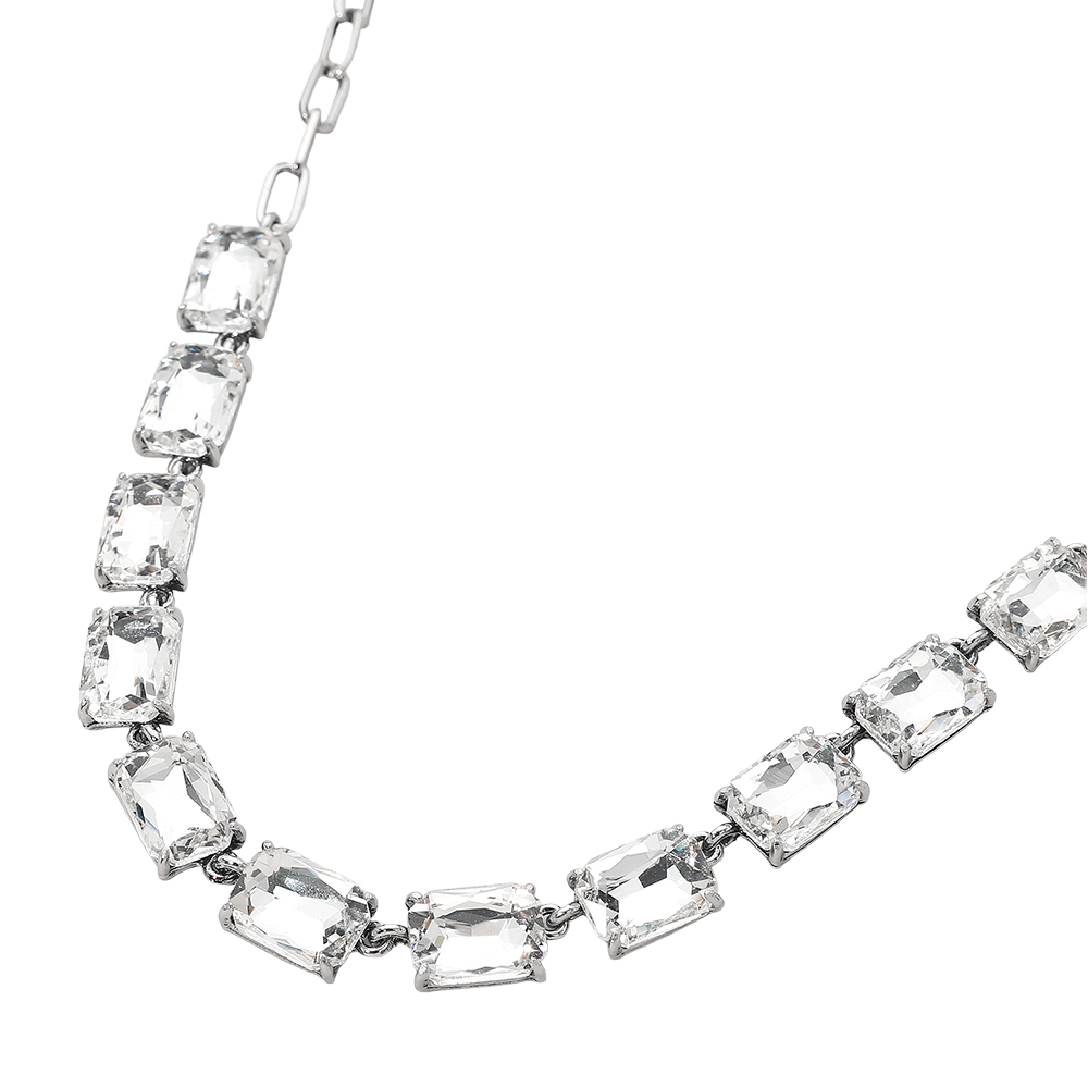 • This elegant gemstone chain necklace features a row of precisely cut stones linked with a sleek chain for a refined, modern look. Its adjustable closure ensures a comfortable fit, making it a sophisticated accessory for formal occasions, evening wear, or adding a statement touch to everyday style.