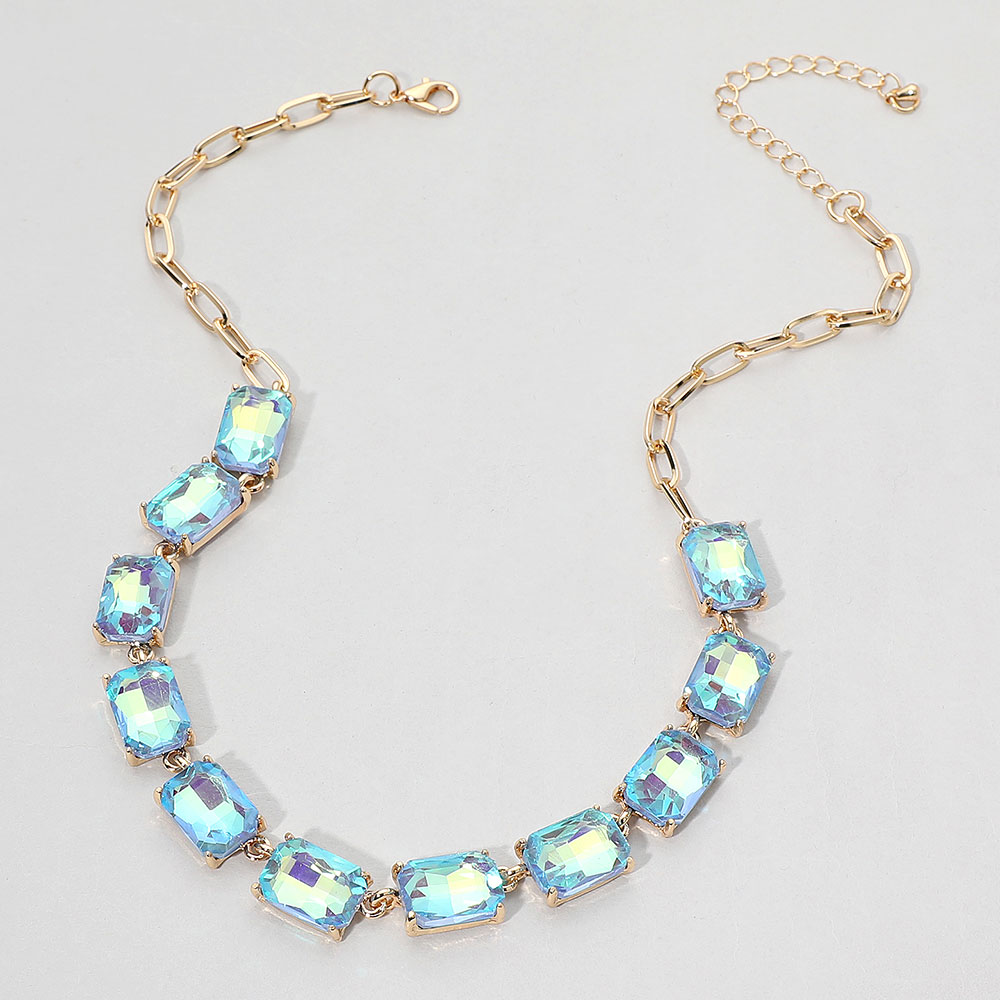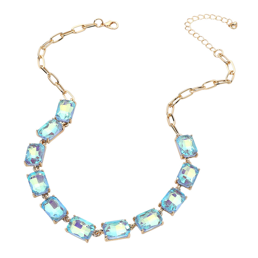 • This elegant gemstone chain necklace features a row of precisely cut stones linked with a sleek chain for a refined, modern look. Its adjustable closure ensures a comfortable fit, making it a sophisticated accessory for formal occasions, evening wear, or adding a statement touch to everyday style.