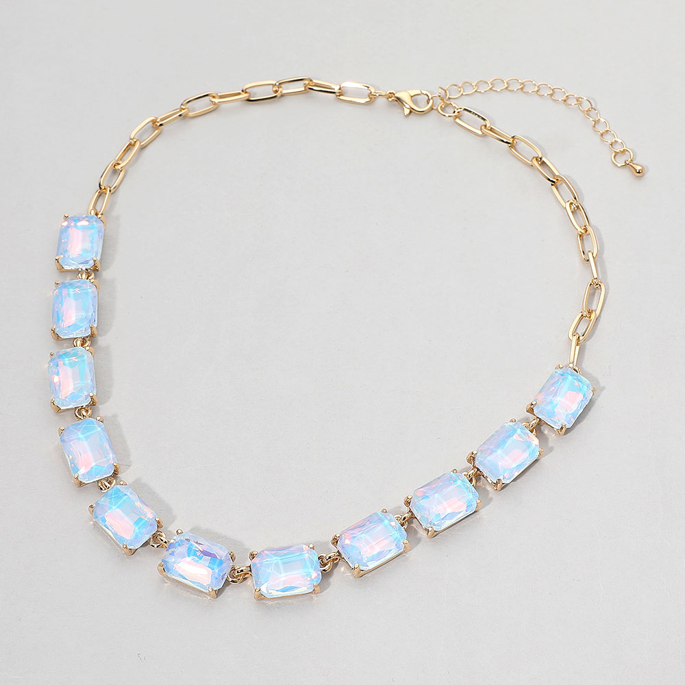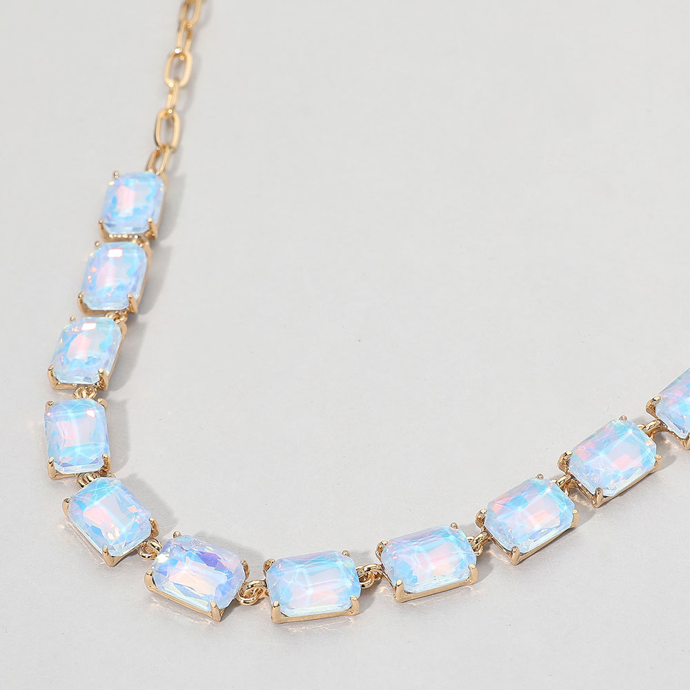 • This elegant gemstone chain necklace features a row of precisely cut stones linked with a sleek chain for a refined, modern look. Its adjustable closure ensures a comfortable fit, making it a sophisticated accessory for formal occasions, evening wear, or adding a statement touch to everyday style.