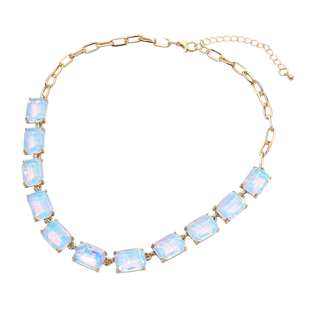 Cushion Rectangular Stone Cluster Link Evening Necklace