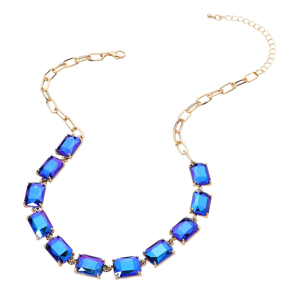 Cushion Rectangular Stone Cluster Link Evening Necklace
