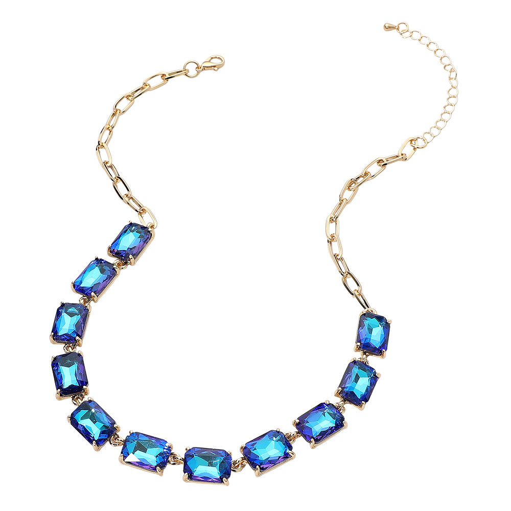 • This elegant gemstone chain necklace features a row of precisely cut stones linked with a sleek chain for a refined, modern look. Its adjustable closure ensures a comfortable fit, making it a sophisticated accessory for formal occasions, evening wear, or adding a statement touch to everyday style.