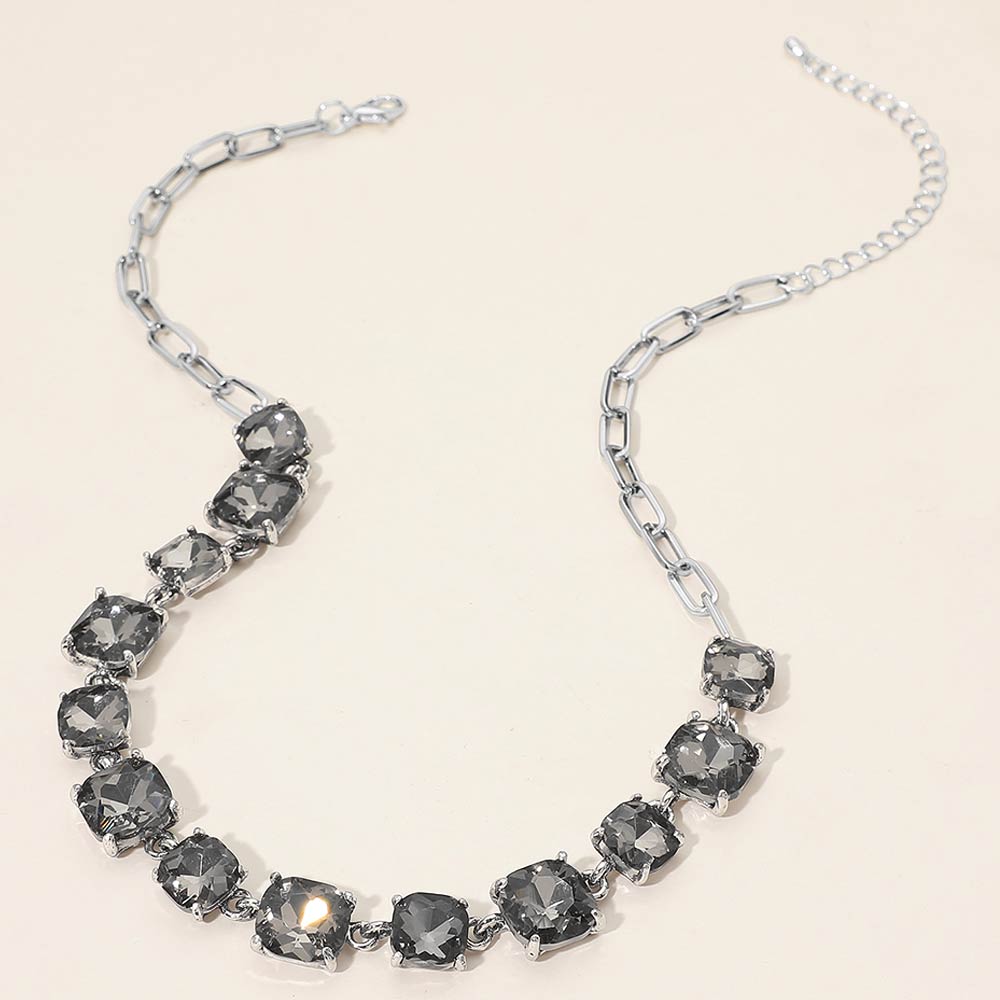 • Elevate your style with this stunning square cut gemstone statement necklace. Featuring shimmering faceted stones linked in a classic design, it offers a chic adjustable fit. Perfect for evening wear, weddings, parties, or adding a sophisticated sparkle to your everyday look.