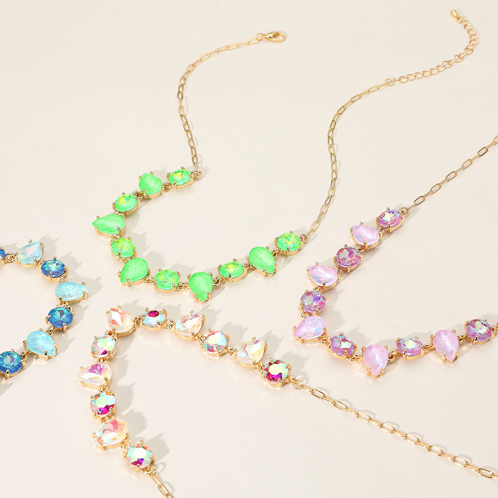 Cushion Teardrop Round Oval Stone Link Evening Necklace