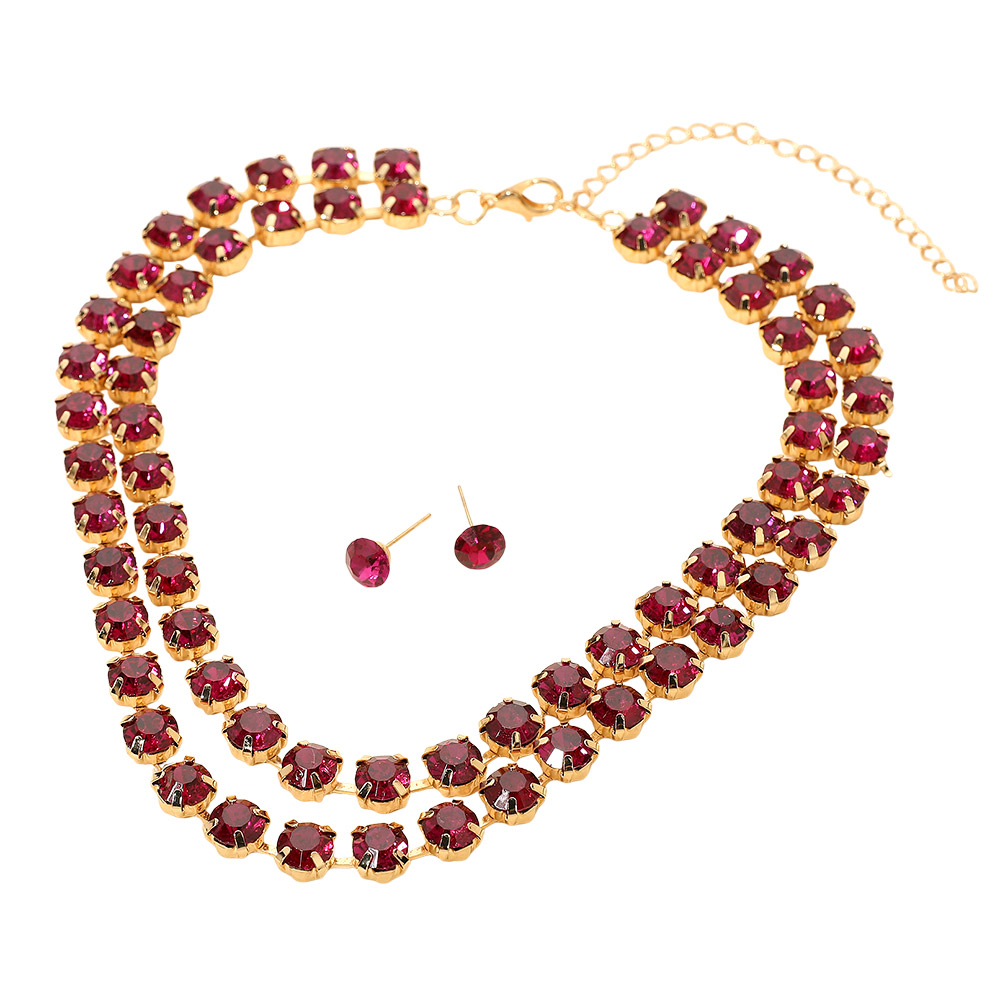 • This double row rhinestone necklace and matching stud earring set adds radiant sparkle to any outfit. Designed to enhance both casual and formal looks, it delivers timeless elegance and refined glamour—perfect for evening events, special occasions, or adding shine to everyday wear.