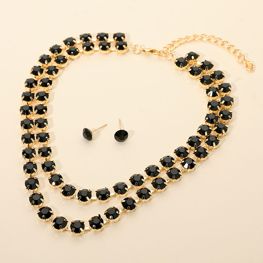 • This double row rhinestone necklace and matching stud earring set adds radiant sparkle to any outfit. Designed to enhance both casual and formal looks, it delivers timeless elegance and refined glamour—perfect for evening events, special occasions, or adding shine to everyday wear.