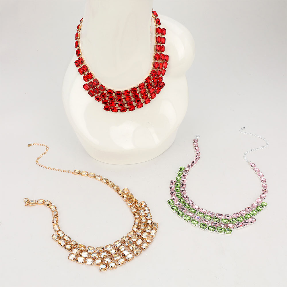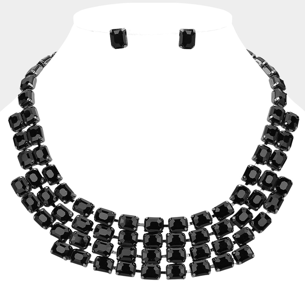 Emerald Cut Glass Stone Cluster Layered Collar Evening Necklace