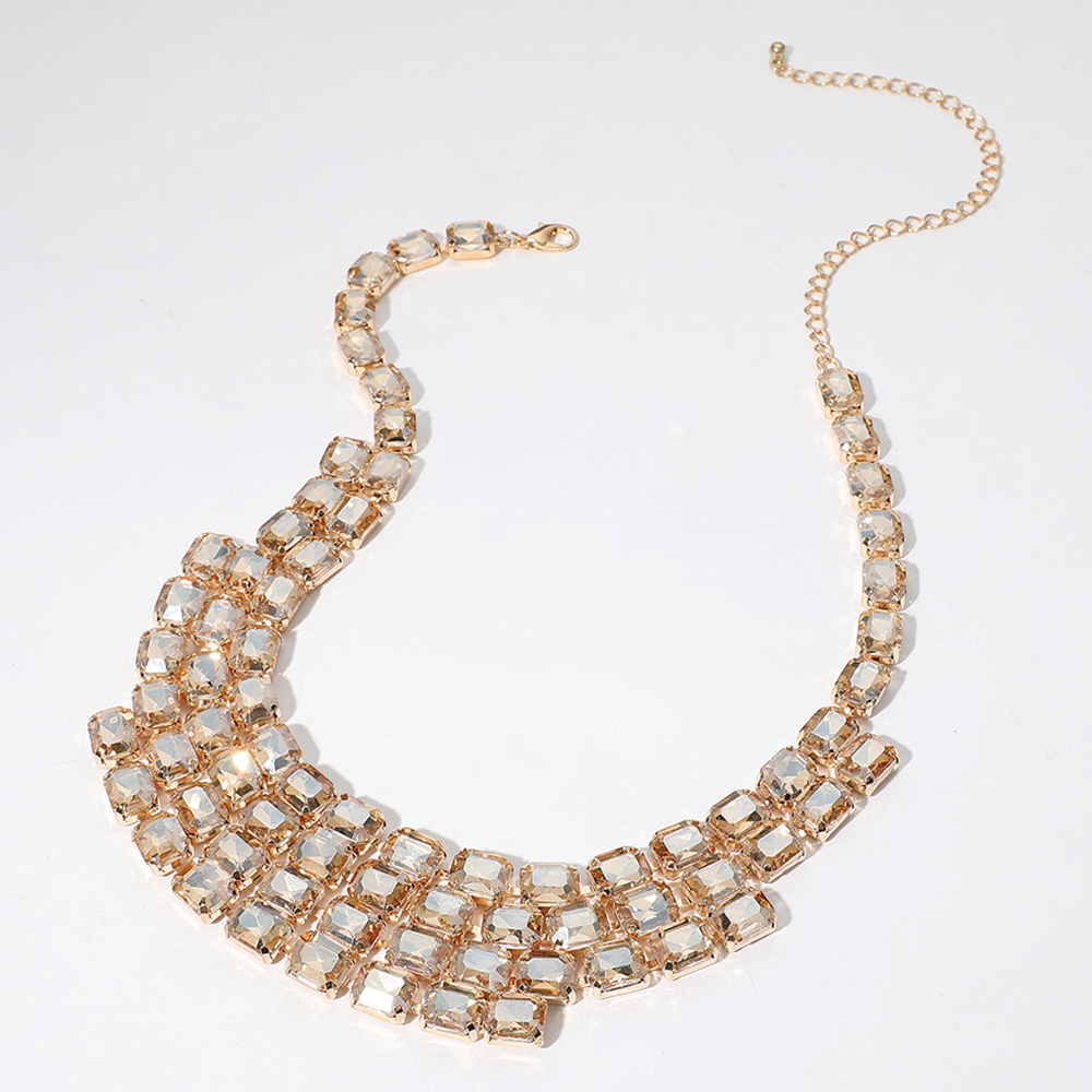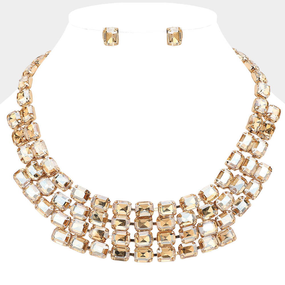 Emerald Cut Glass Stone Cluster Layered Collar Evening Necklace