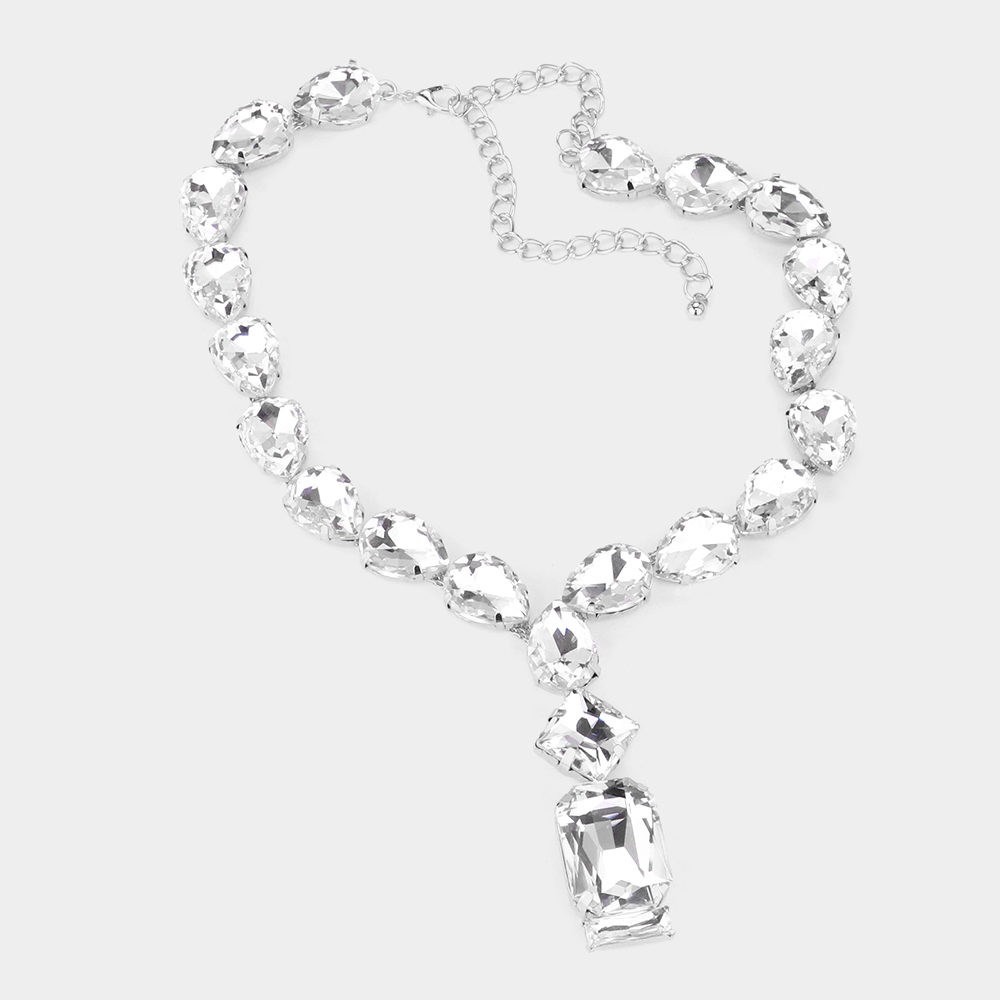 Emerald Cut Stone Cluster Pendant Pointed Teardrop Stone Cluster Link Evening Necklace