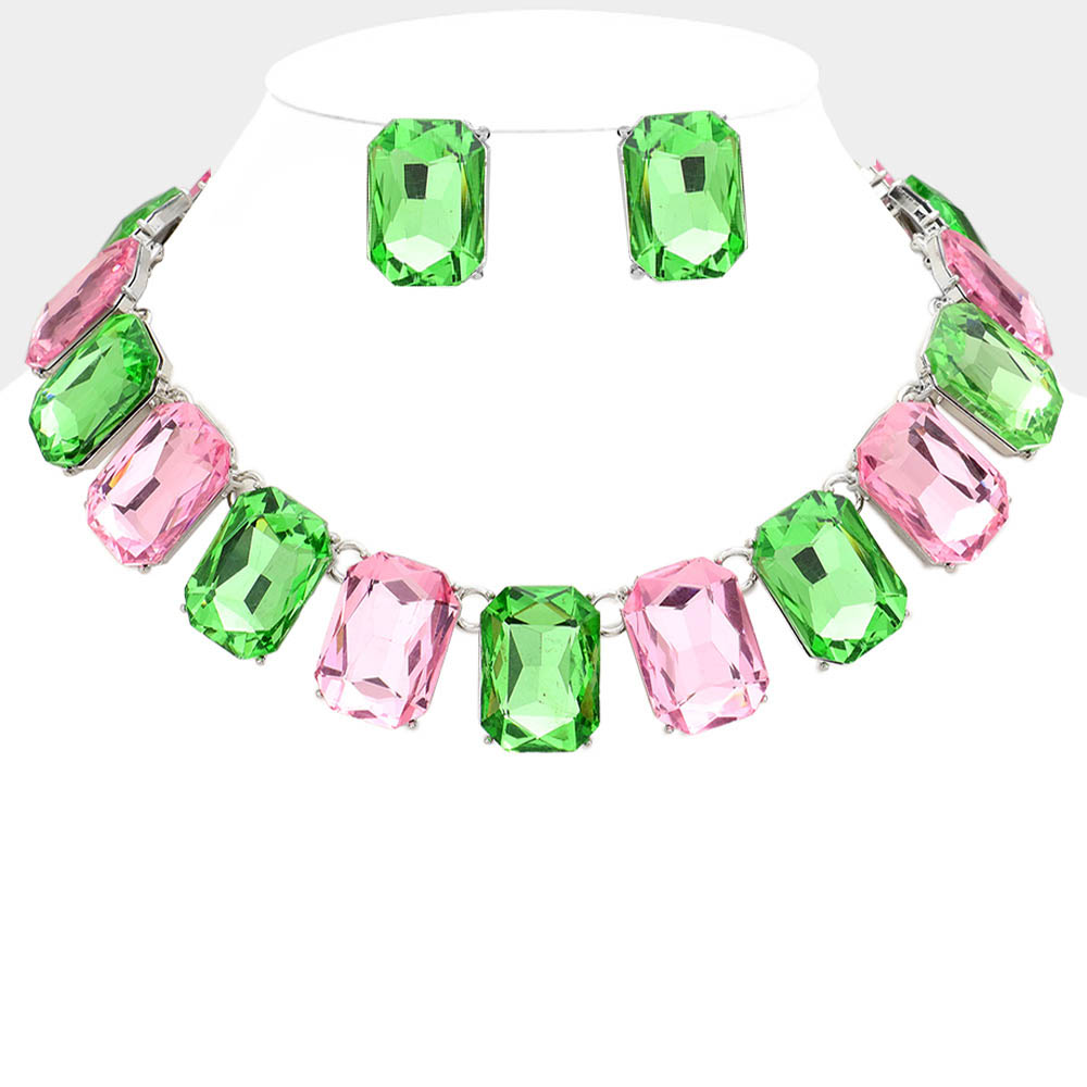 Emerald Cut Stone Link Evening Necklace