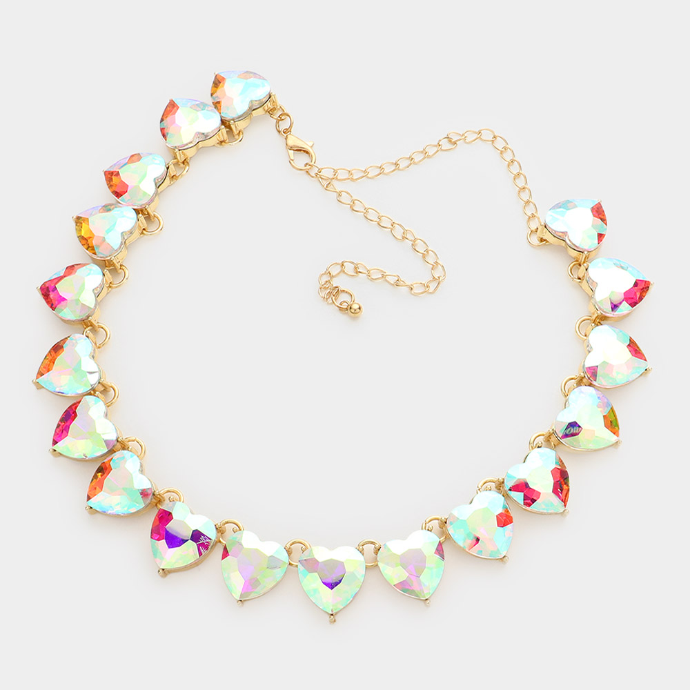 Glass Crystal Stone Cluster Pointed Rhinestone Paved Necklace