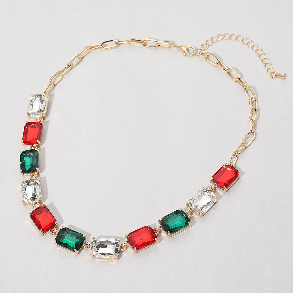 Details • Necklace Size : 16" + 2.5" L • Decor Size : 0.4" L • This elegant gemstone chain necklace features a row of precisely cut stones linked with a sleek chain for a refined, modern look. Its adjustable closure ensures a comfortable fit, making it a sophisticated accessory for formal occasions, evening wear, or adding a statement touch to everyday style. • Lead and Nickel Compliant