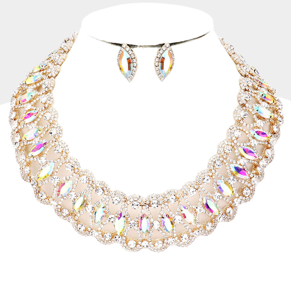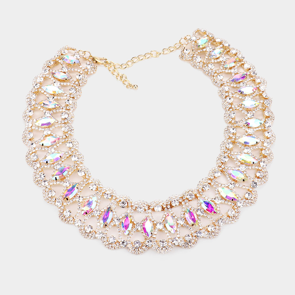 Marquise Stone Accented Collar Evening Necklace