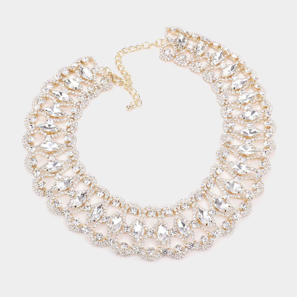 Marquise Stone Accented Collar Evening Necklace