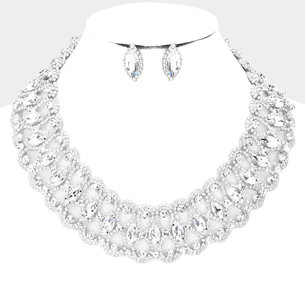 Pearl Accent Rhinestone Paved Teardrop Pendant Pearl Necklace