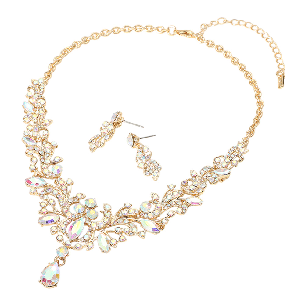 Marquise Stone Cluster Embellished Evening Necklace