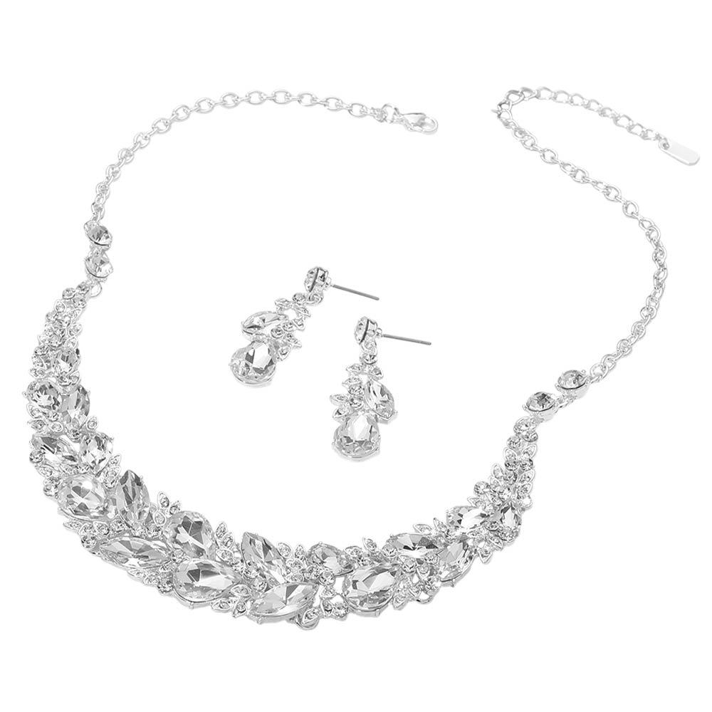 • Elegant statement necklace and matching earring set designed to elevate formal and evening looks. Featuring layered crystal accents and a graceful silhouette, this coordinated set adds dramatic sparkle and refined style, making it ideal for special occasions, events, or standout gifting.