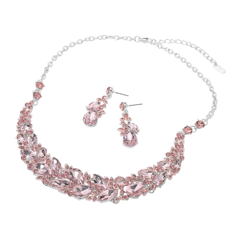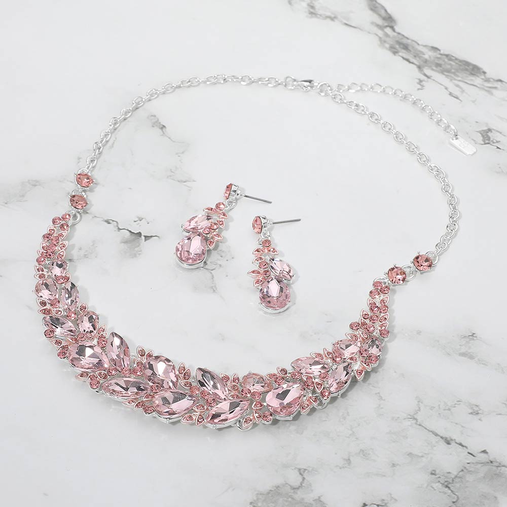 • Elegant statement necklace and matching earring set designed to elevate formal and evening looks. Featuring layered crystal accents and a graceful silhouette, this coordinated set adds dramatic sparkle and refined style, making it ideal for special occasions, events, or standout gifting.